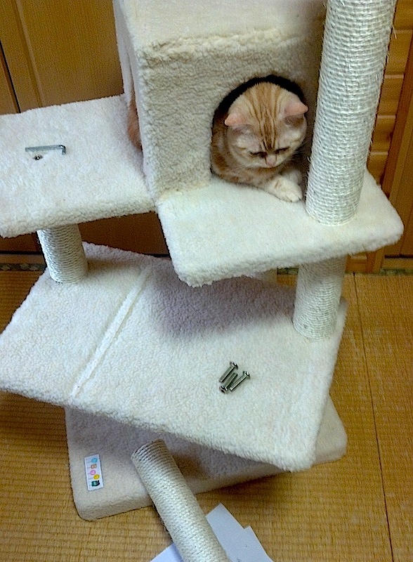 昨日、新しいねこタワーが届きましたが、めんどーくせえやと放置。