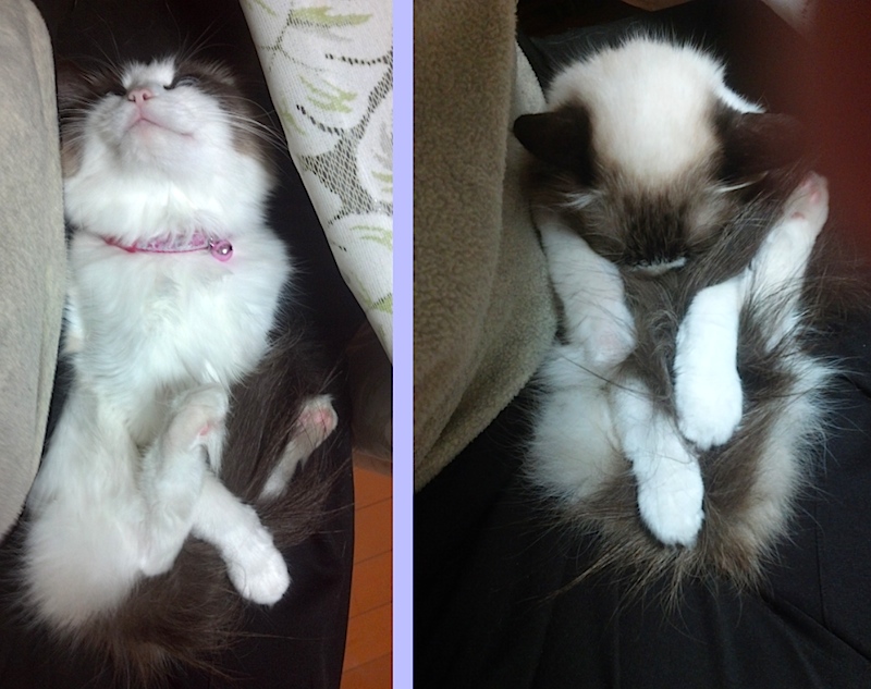 胡座をかくと、ラグドールのしぃぽんが乗りたがります。