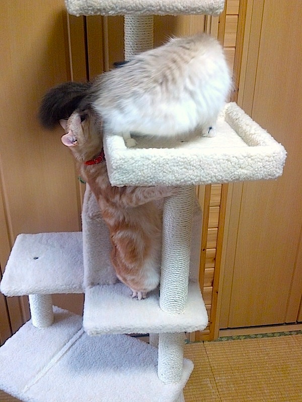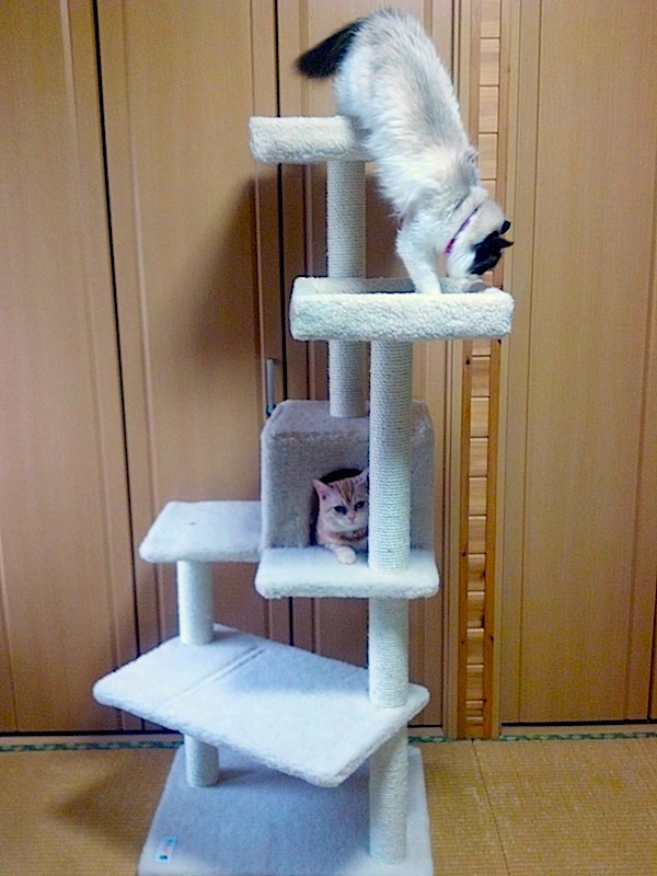 昨日、新しいねこタワーが届きましたが、めんどーくせえやと放置。