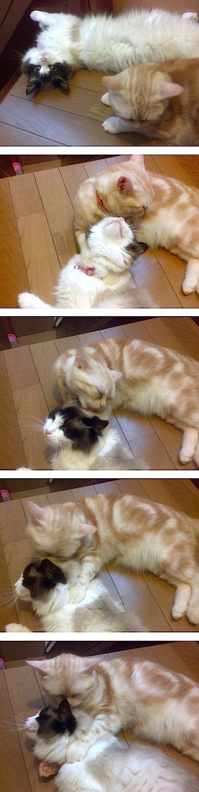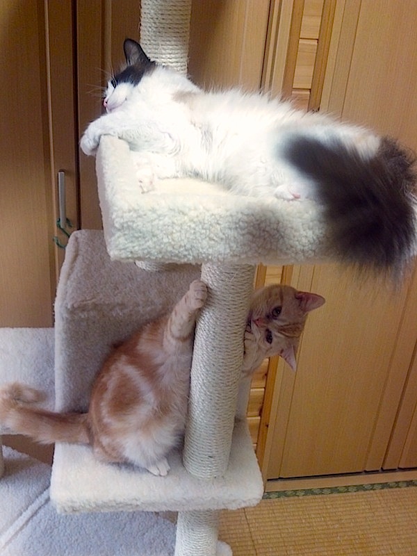にゃんこ同士は、直ぐに ちょっかいを出し合います。