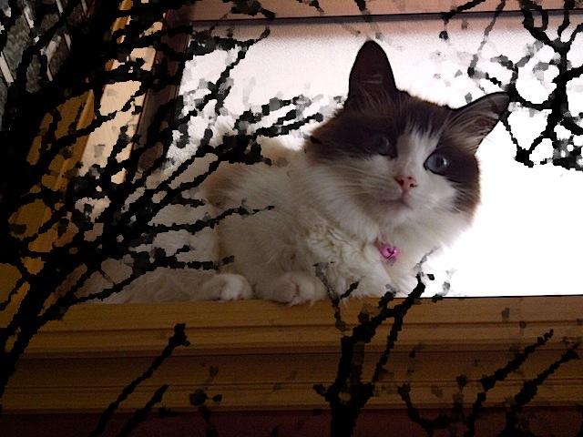 しぃぽん(ラグドール・シールポイント・バイカラー)は、性格が繊細で内向的。
