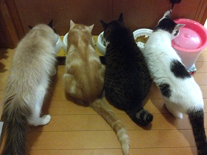 何の脈絡も無く、いきなり首を締めたり、猫パンチをしても、他の先輩にゃんこ達は、怒らず平和ムードのまま。