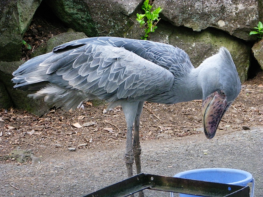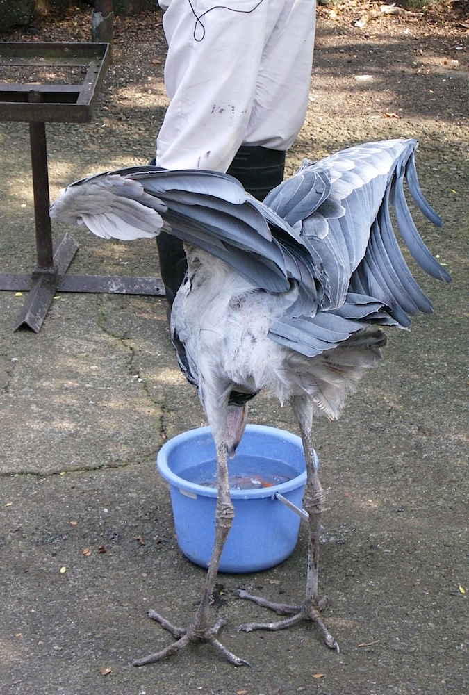 顔が恐いのと、普段は動かないので有名なハシビロコウさんですが、この時は、飼育係の方が餌やりをしつつ、かまっていたので、良く動いてくれました。