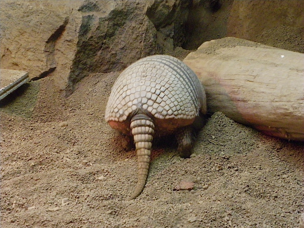↑ ムツオビアルマジロ。数えてみると、甲羅のジョイントが6本なので、直ぐに「あ、ムツオビだ!」と判ります。