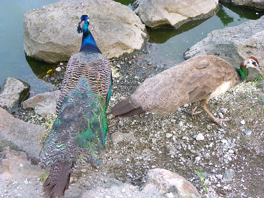 こうして見ると、派手なオスのクジャクでも、カモフラージュみたいに、案外景色に溶け込みますね。