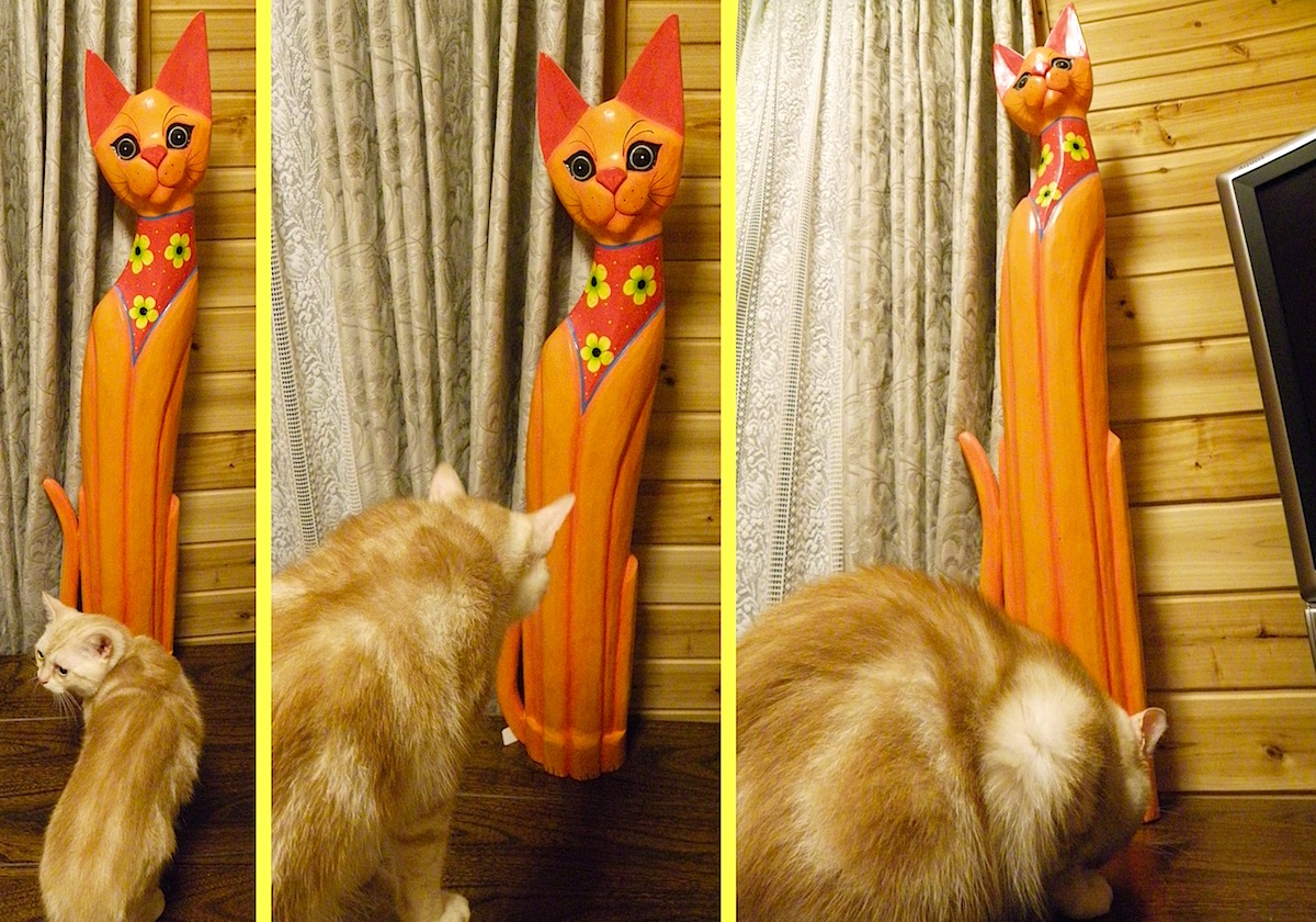 ↑ ウブドバリ伊豆で、カミさんが大きなにゃんこの木彫りを買ってしまいました。