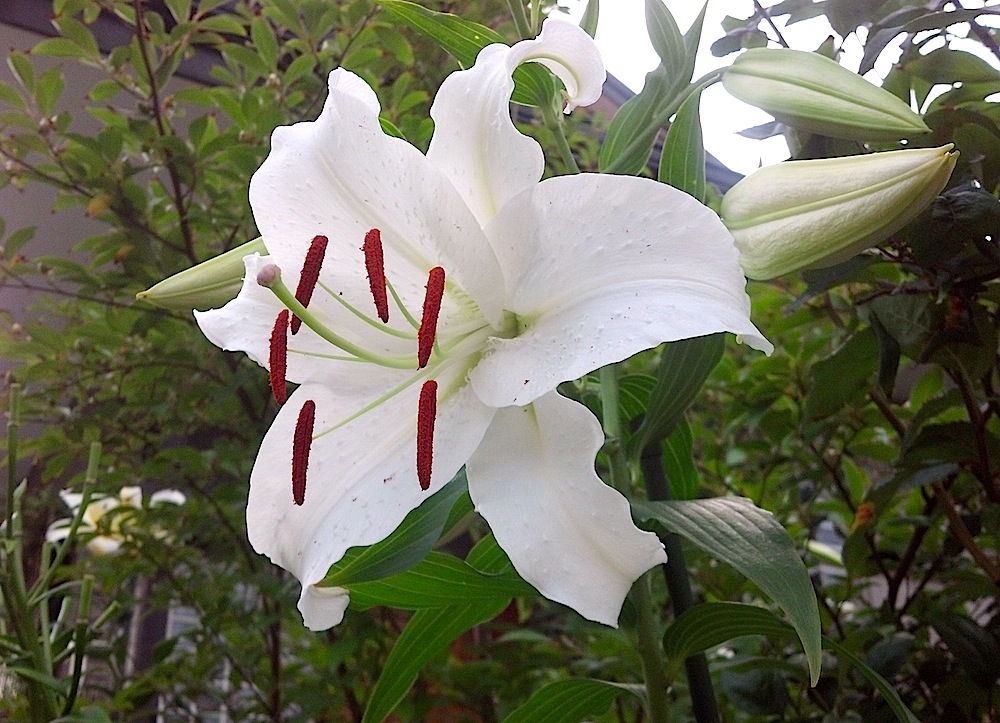 遅咲きのオリエンタル系のユリが、ようやく開花しました。