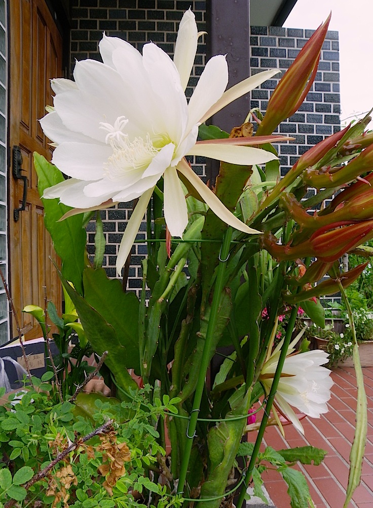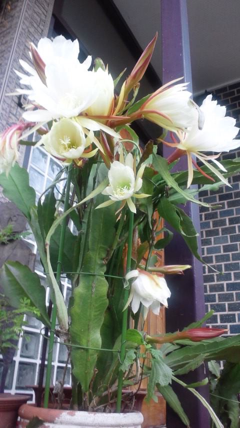 月下美人の近縁種のクジャクサボテンが昨夜から開花♪