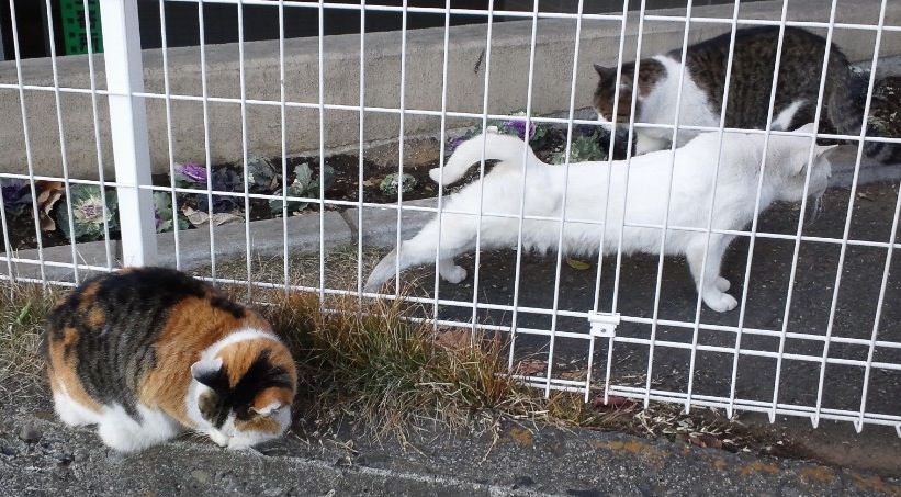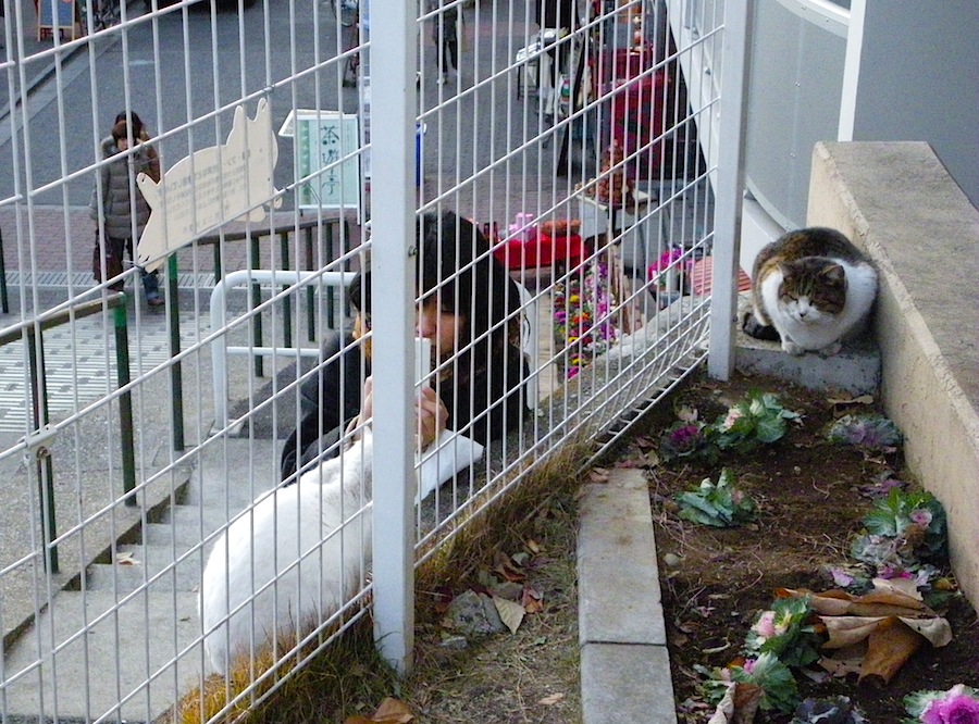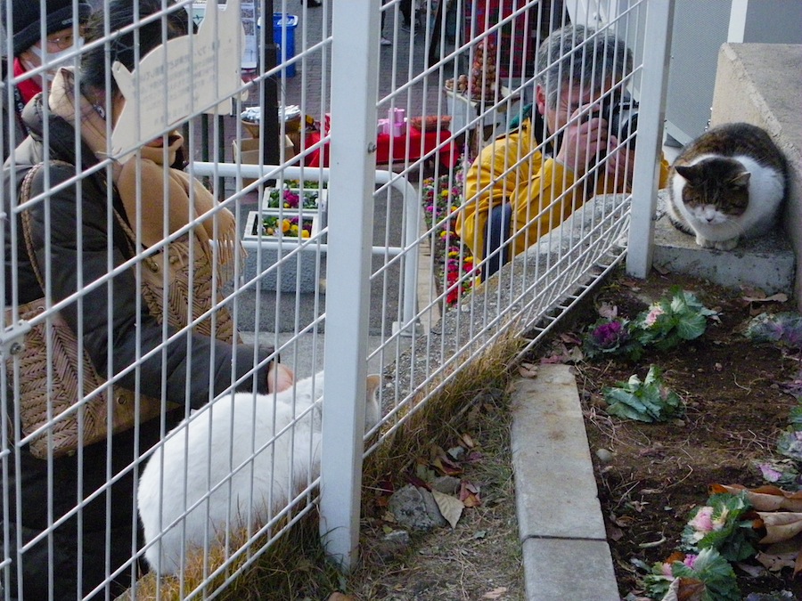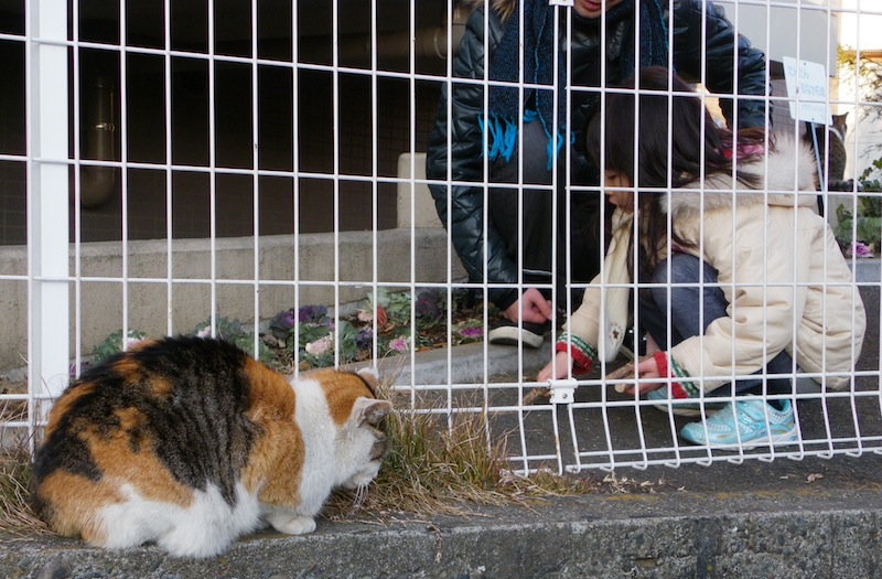 人々が、にゃんこを写メに撮ってます。和みますなぁ。