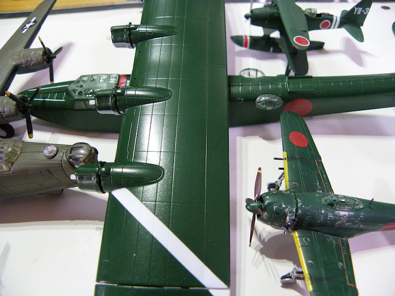 まだ、仮組です。似たような4発機のコンソリと較べてみると、九七大艇はでかい! 1/144で翼幅275mm。