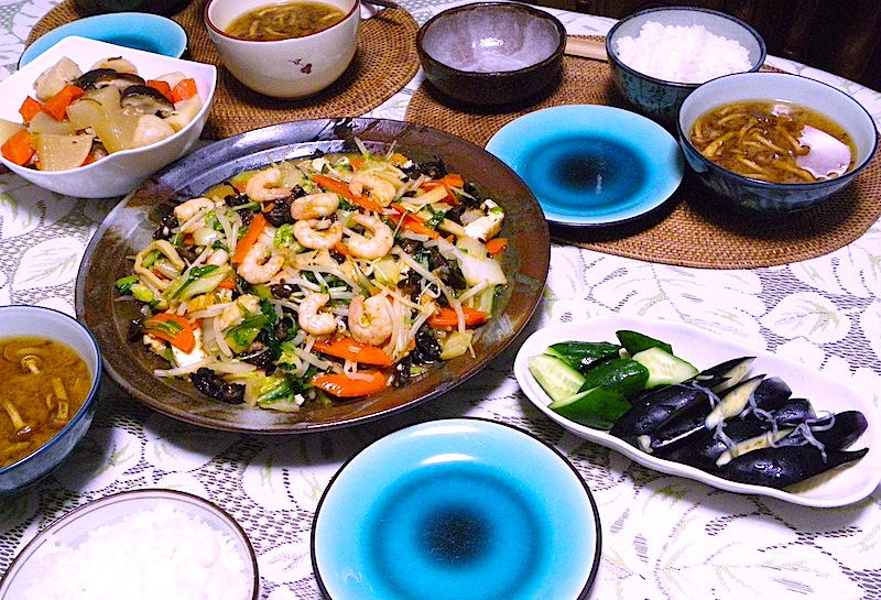 晩ご飯を用意。ギトギトしないアッサリ系の味付けでいきましょ。