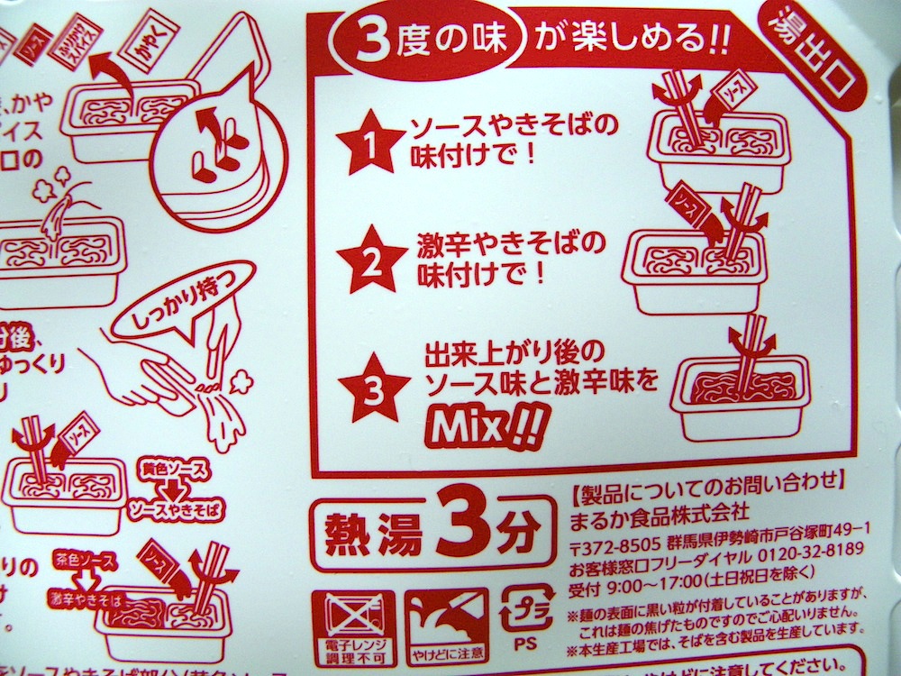ソースは、普通と激辛!の2種類。かやく、ふりかけ、スパイスがそれぞれ1袋。