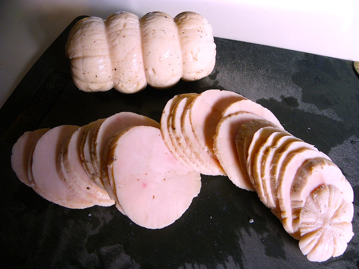 切った瞬間、鶏肉というよりも、まさにハムの香りがフワッと立ち上って来ました。