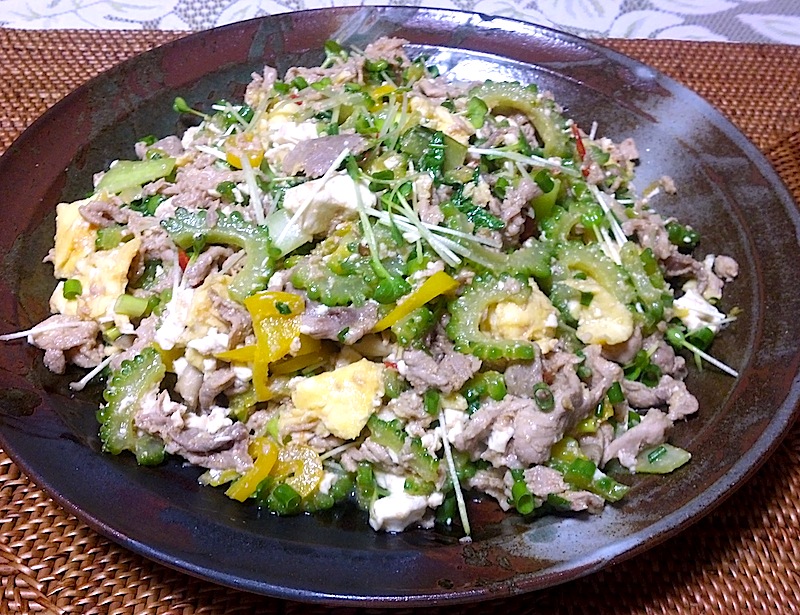 薄く切ったゴーヤーだけを別にして、強火でさっと炒めておくと、良い食感になりますね。