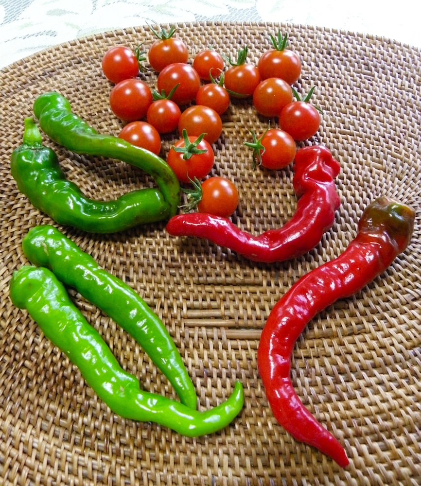 辛くない大きな唐辛子とプチトマト。