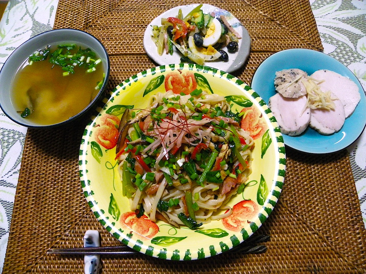 疲れた夜だから、柔らかまろやか味の焼うどんにしました。