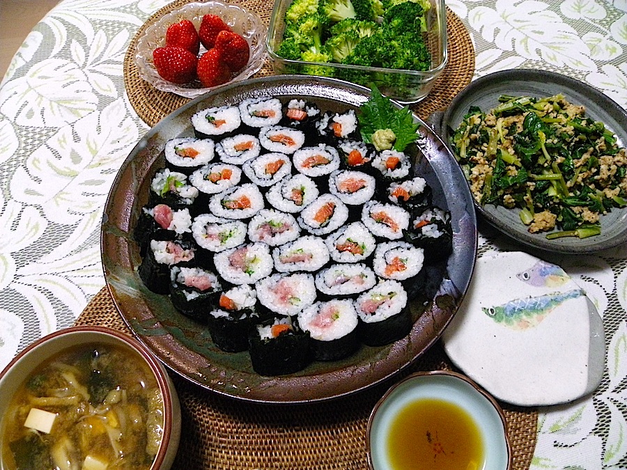 余った寿司飯で五目寿司を作りました。明日の朝ごはん用。