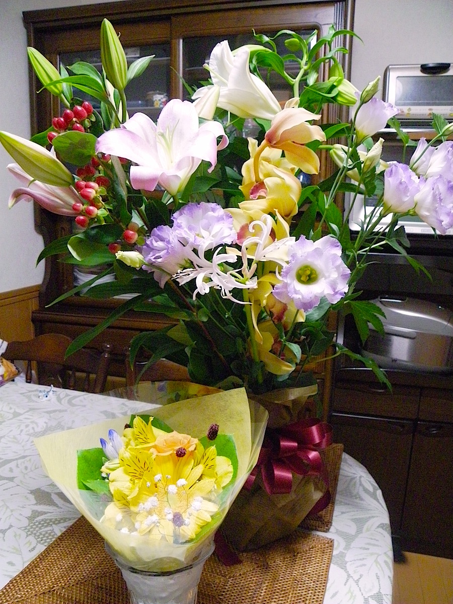 偶然、同じ頃にそれぞれ花束を買ってた(;^o^)