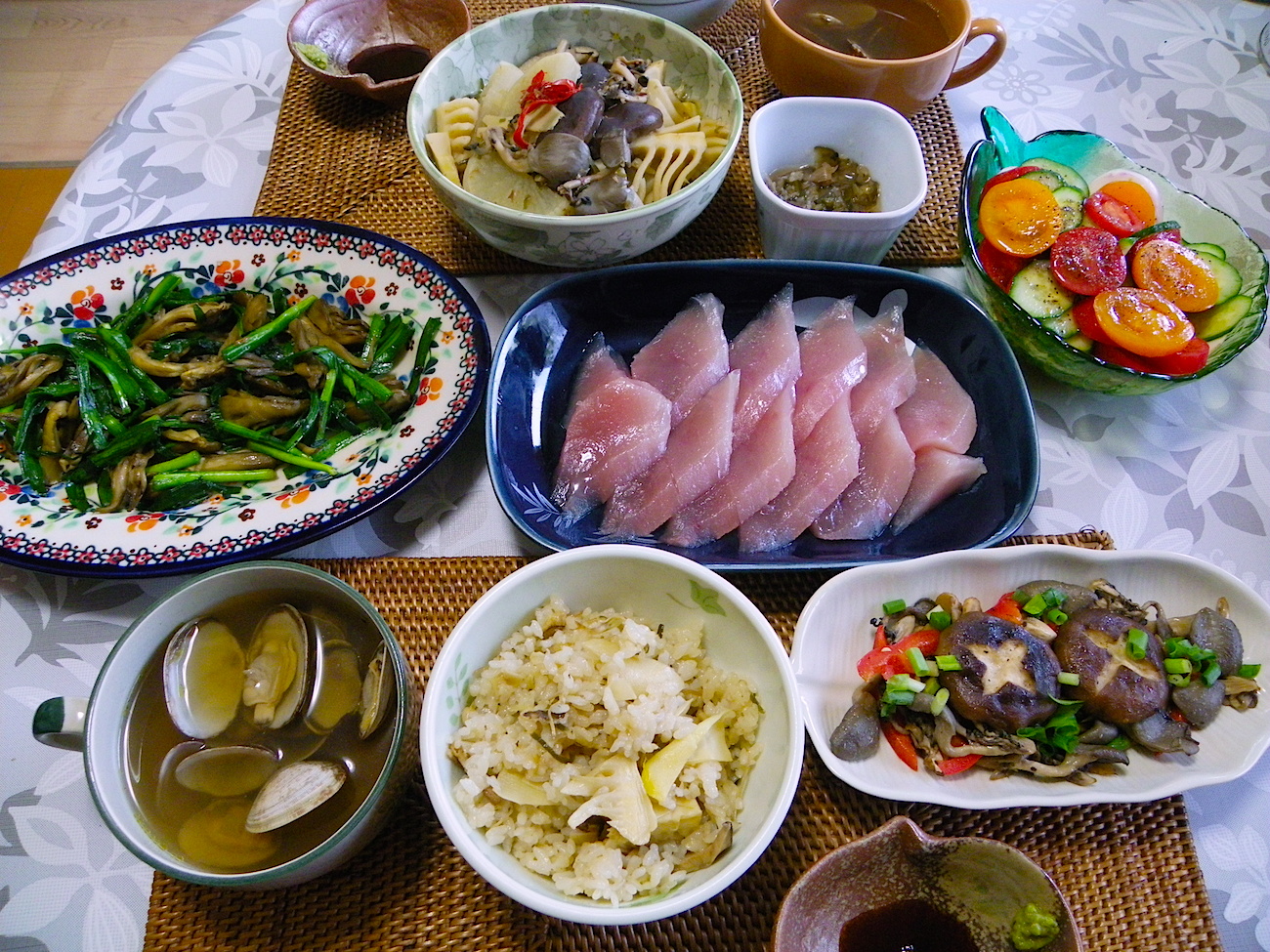 昨夜、カミさんの会社の同僚の人が市民の森(うちの近所)で体験タケノコ掘りをしてゲットしたもののおすそ分けで、またも筍ご飯。