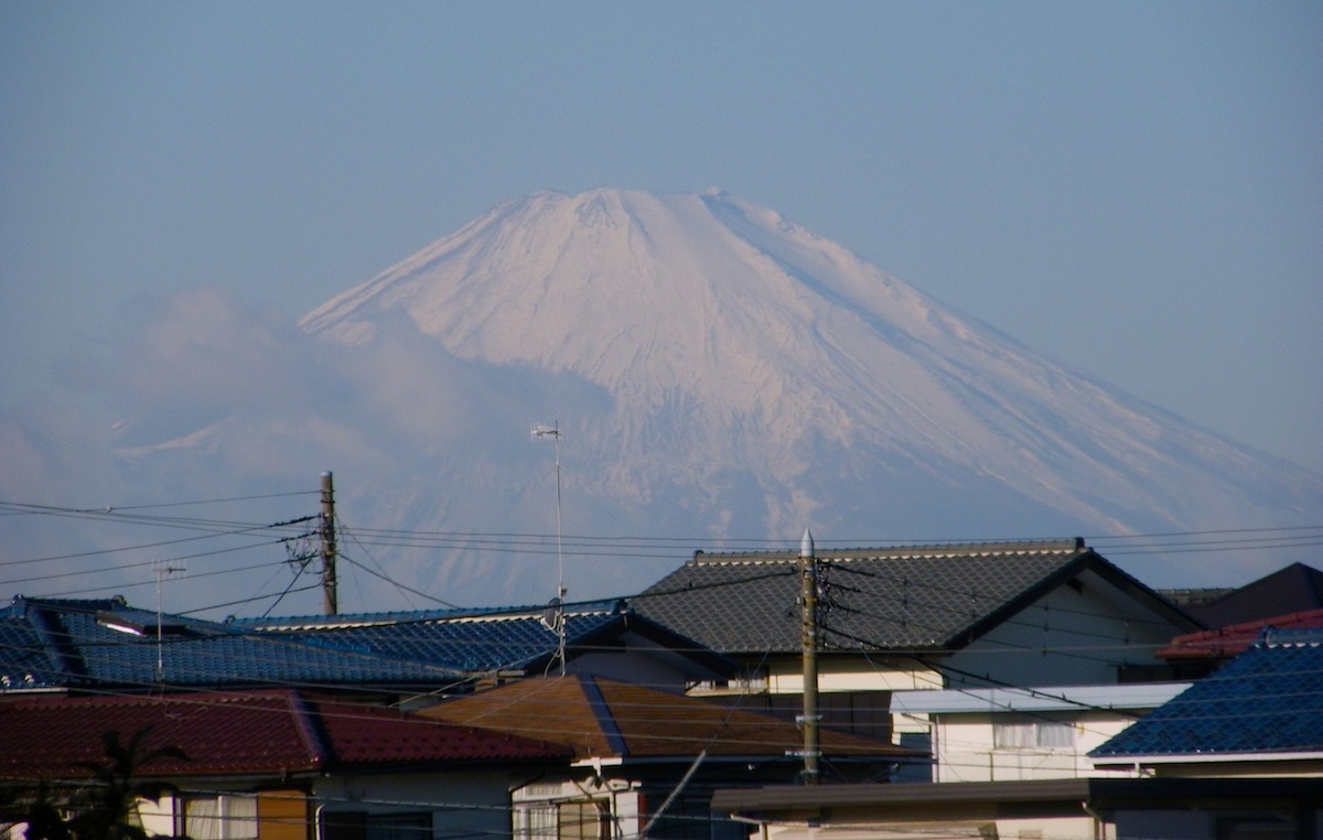 隣の山の住宅地から観た富士山。