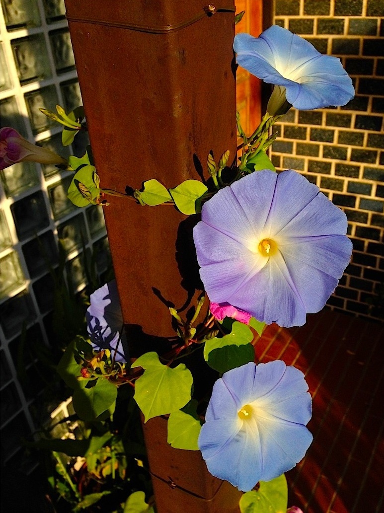 毎朝、5輪くらいずつ花開いてくれるアサガオ。