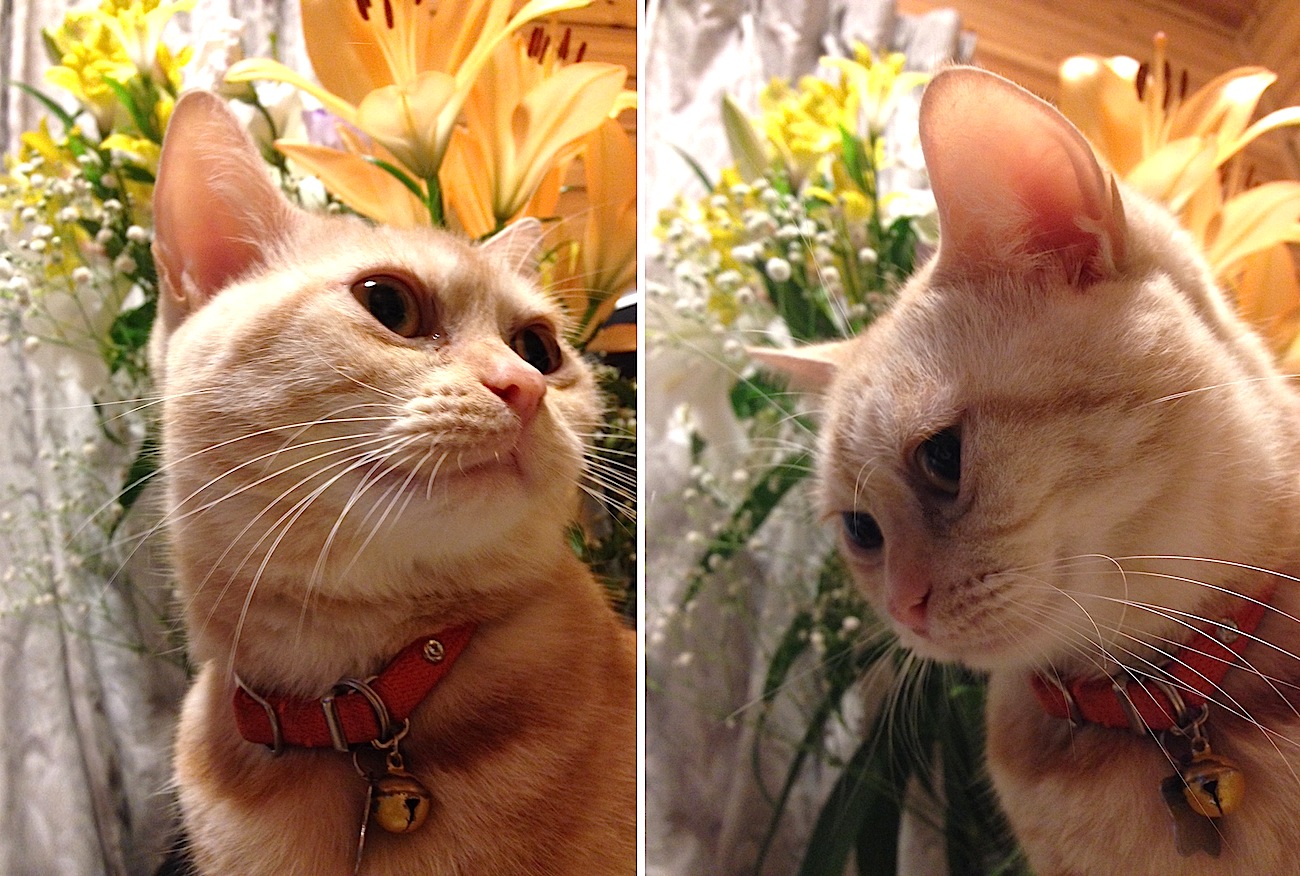 乙女盛りなおじいちゃん顔のココたんではありますが、花をバックにすれば可憐に見えるかな…
