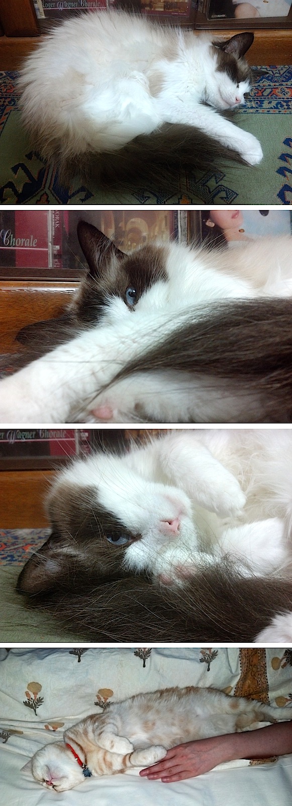 画像一番下)カミさんと午睡するアメショー・レッドタビーのココたん。