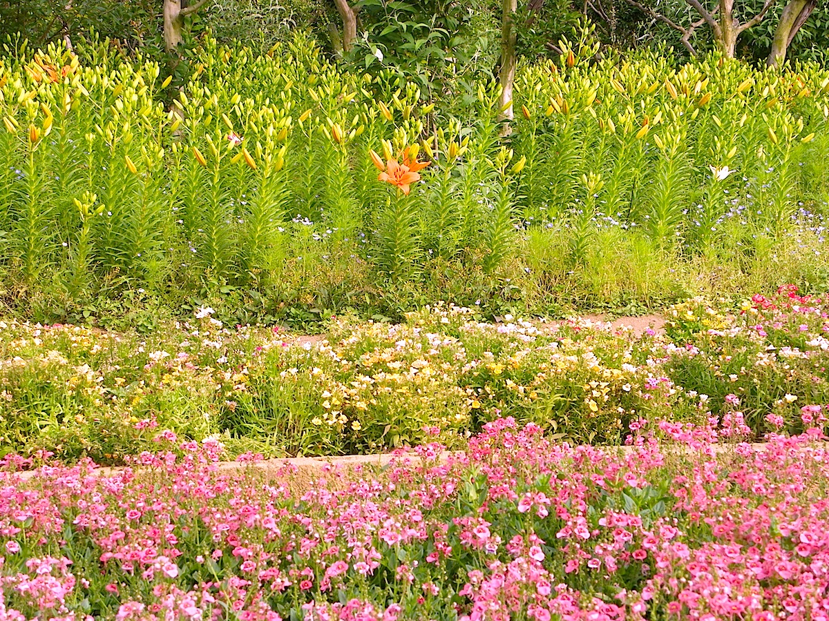 この植物園には、百合が広い面積に密生していて、オリエント系が見頃の頃は見応えがあります。