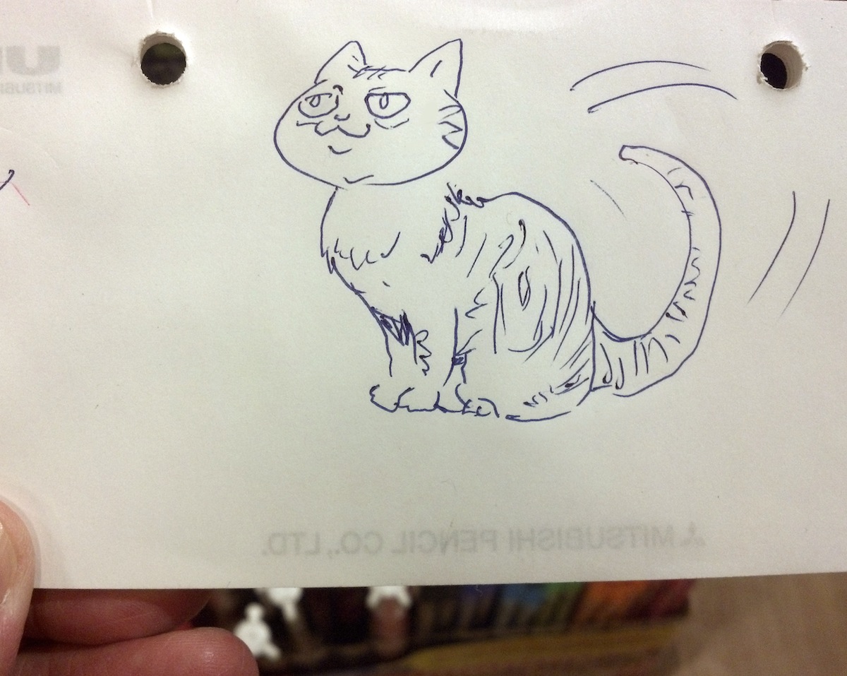 ステイショナリーの試し書きのペンと紙を見ると、ついついラクガキをしたくなります。